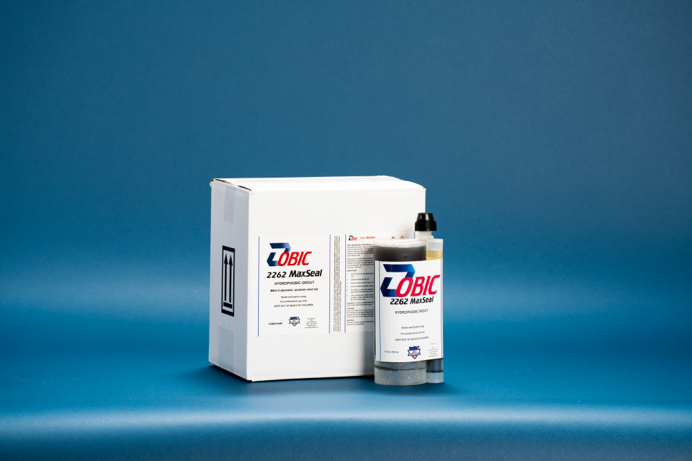 OBIC 2262 MaxSeal is a dual-component moisture activated, expanding, rigid hydrophobic polyurethane foam. OBIC 2062 MaxSeal is designed to permeate soil granules and fill large and small voids where water is leaking into structures. It withstands wet/dry cycles, permeates well, and reacts quickly with water to form a dense, impermeable rigid foam. The convenient cartridge package allows easy access to hard-to-reach places.